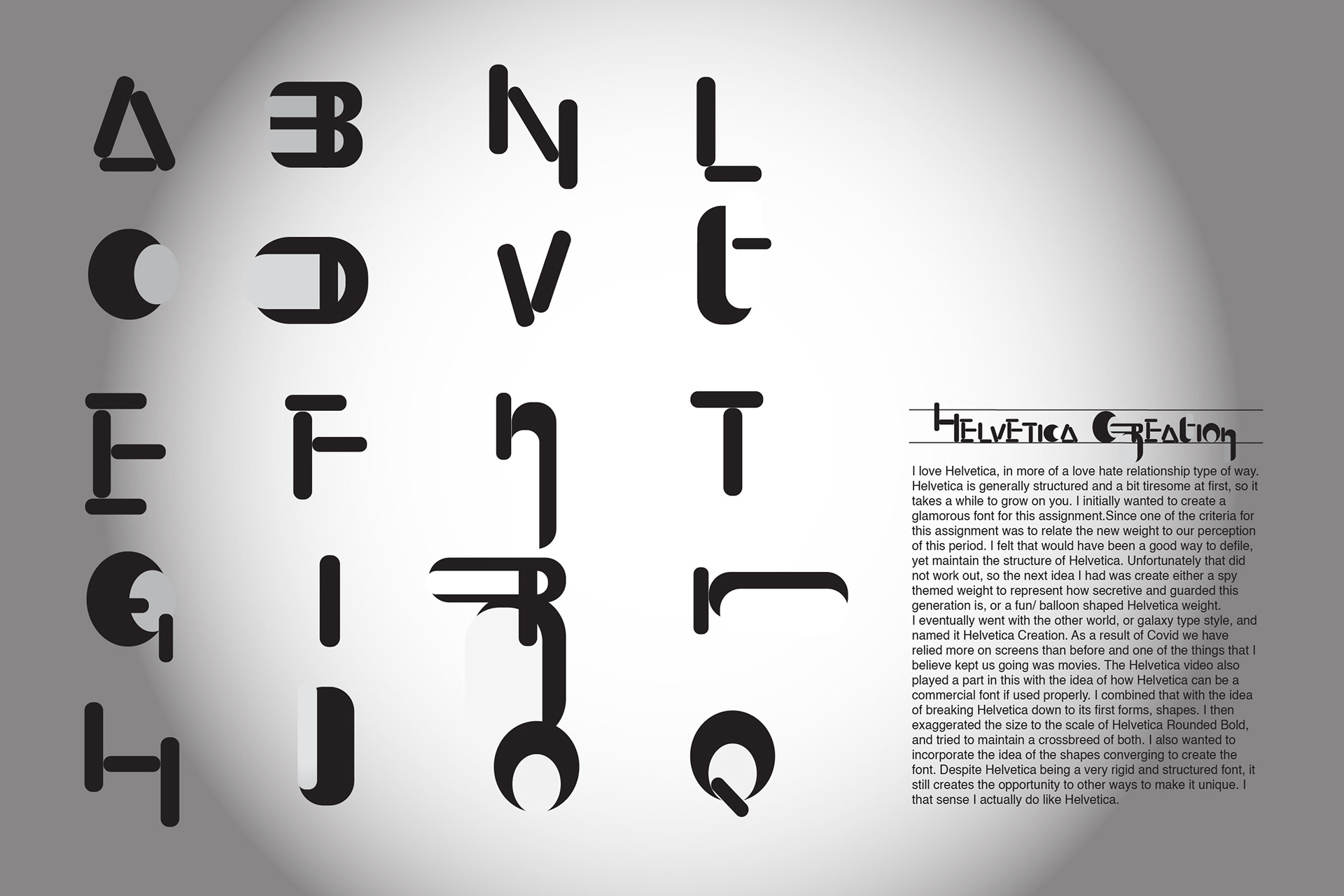 love hate relationship with Helvetica: A school project to create a new font for Helvetica.